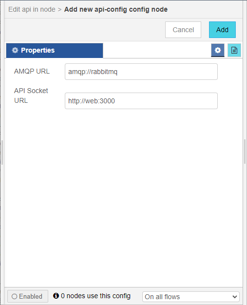 - Double click on api add node.