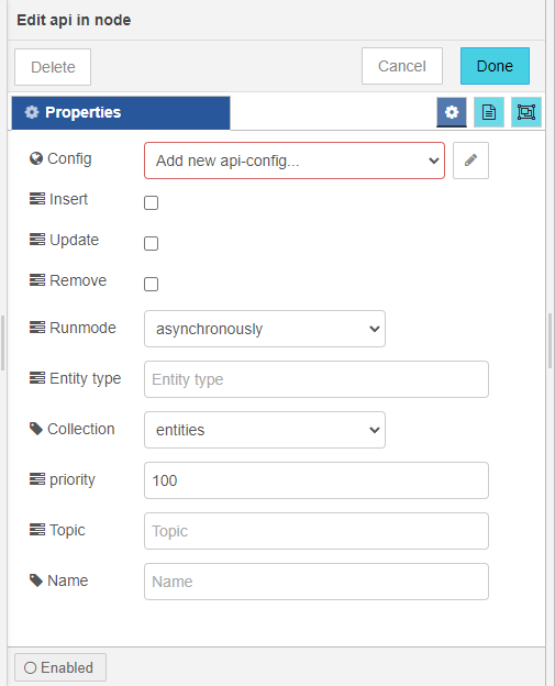 - Set api in node properties from Edit api in node screen.