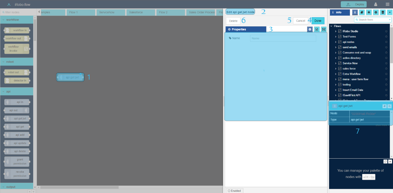 - Edit api get jwt node Panel is opened to the right as shown in the image below.