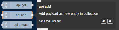 API add Node is used to add an item of specific type and collection of entities/ assets in Database DB.