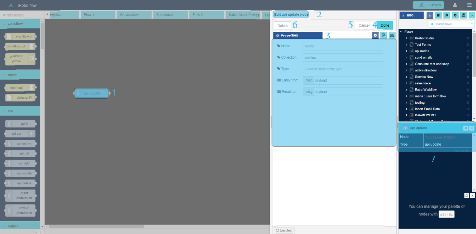 - Edit api update node Panel is opened to the right as shown in the image below.