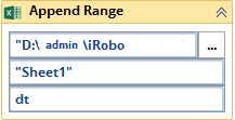 iRobo.Activity.Append Range Append range of data to DataTable to last column or last row as specified. |
