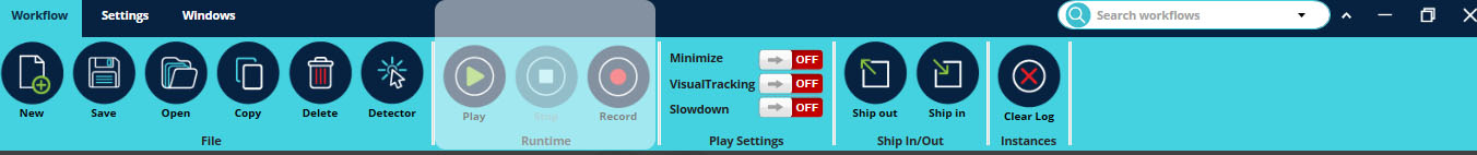 IRobo Toolbar/ Workflow consists of the recording buttons as follows: