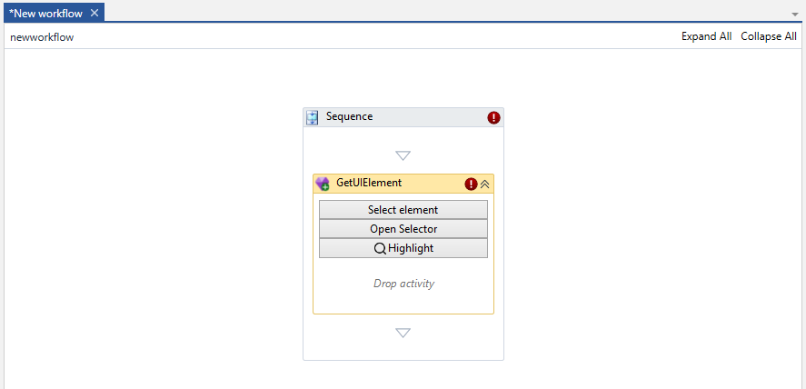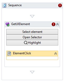 - Drag Select Element Activity to the Sequence as shown in the image below.