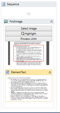 - Add Extract Text Activity to Find Image Activity, as shown in the image below.