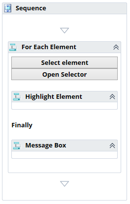 - Drag any Activity into For Each Element Activity to trigger an action on each Element it gets, for example:Highlight Element Activity to highlight each HTML Element.