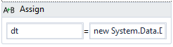 - Assign DataTable Variable to the second Assign Activity as: dt = new System.Data.DataTable("New Table"), as shown in the image below.