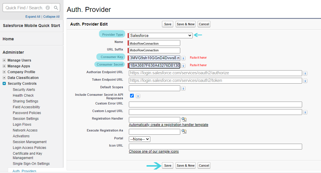 - Before we proceed in creating the Auth Provider app. Copy the Consumer Key and Consumer Secret from current created App and save it in a Notepad file for later as shown in the above image.