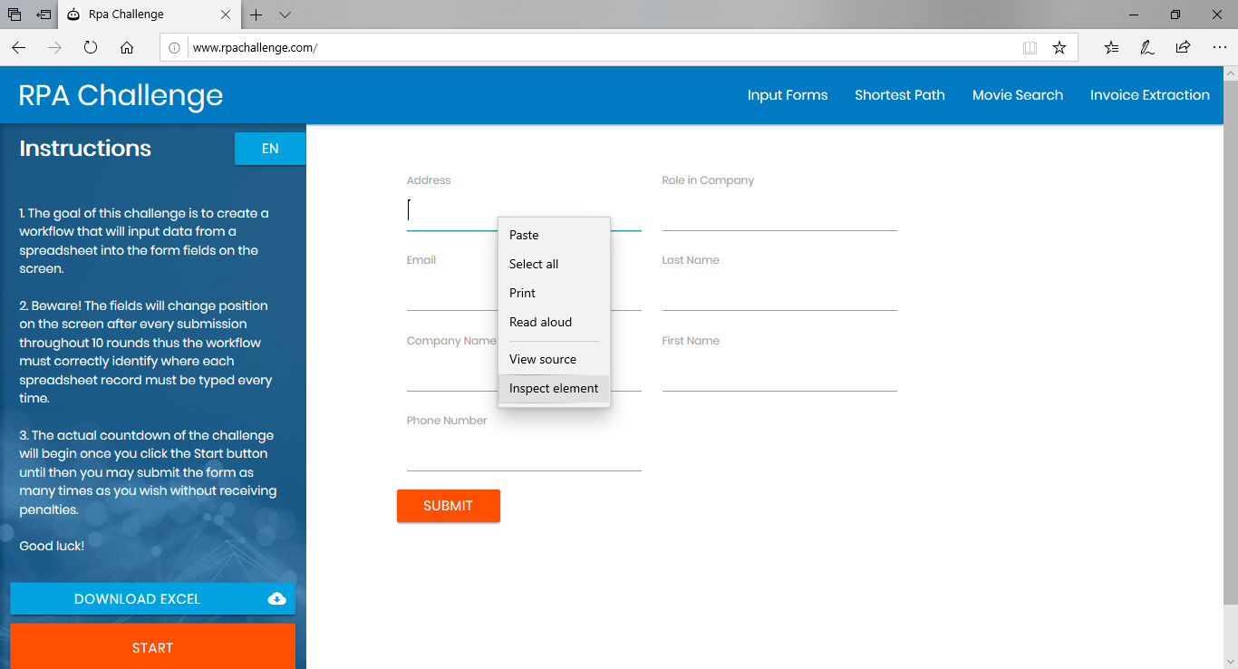 - In the Web page, Right-Click on the selected Element and select Inspect element from menu, as shown in the image below.