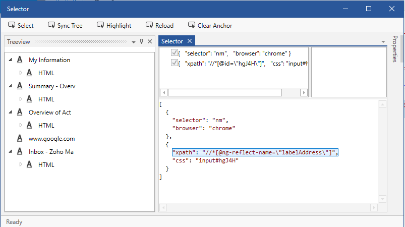- Click Open Selector button to access Sync Tree of the selected Element.