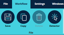 It contains command buttons with which you can access commands; like record, play, copy and save Workflows.