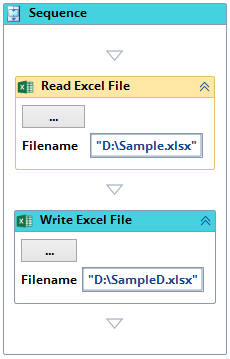 - We can use either JSON Object and DataSet Variable Output from Read Excel File Activity as an Input to Write Excel File Activity.