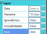 - IncludeHeaders - Implement Header Row or not. Its input is True/False arguments.