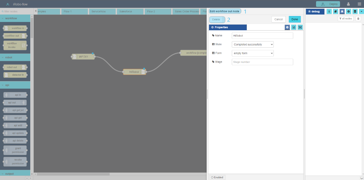 - Click on Delete button from the Keyboard, Node is deleted from the Flow.